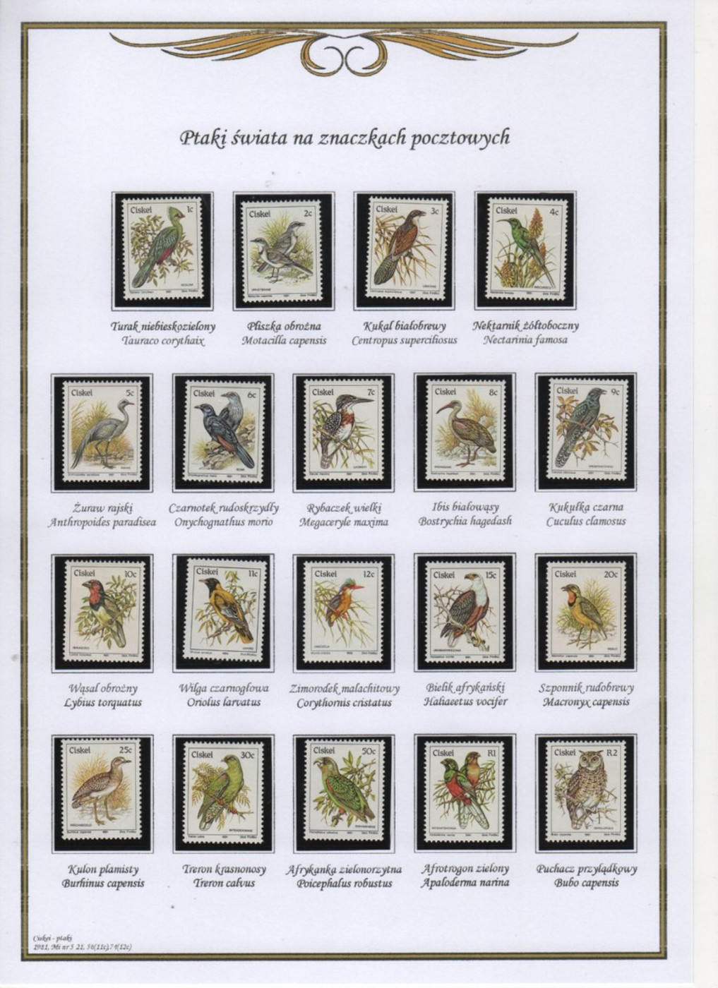 Ptaki na znaczkach - C